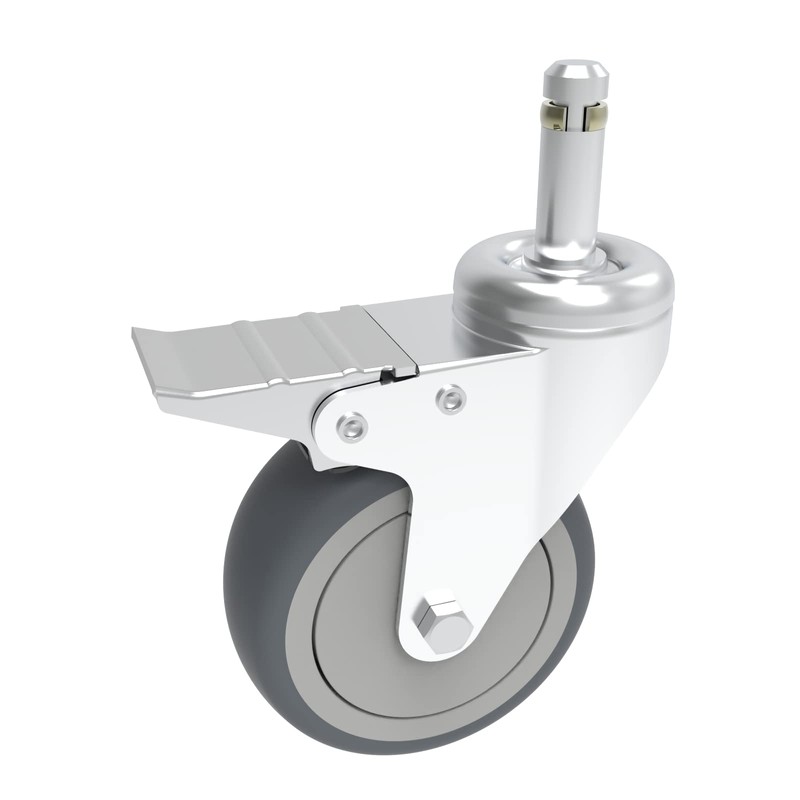 - CASTER 7/16-INCH STEM - 2 Dual Locking and 2 Swivel wheels, 5 inch in diameter Thermoplastic rubber wheels over polypropylene hub, offer resistance to oils and chemicals.