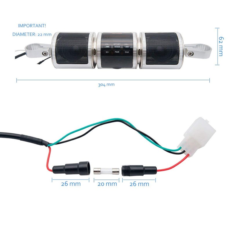 Riloer 12V Motorcycle Bluetooth Audio Sound System, Waterproof