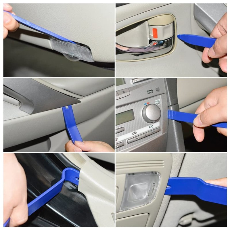 - Application: car trim removal tools are suitable for interior and exterior trim, e.g. For removing door panels, instrument panels, radio panels, instrument panels, roof liners, etc.