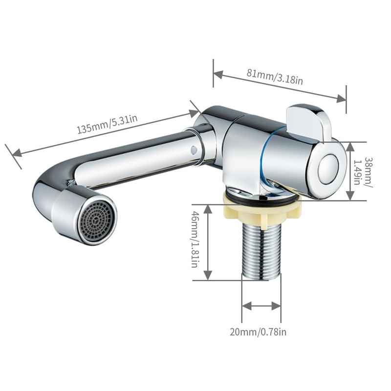 - 【Perfect Function】Folding faucets for RV yachts open windows in the kitchen or washroom is located in a small, informal place such as a bar counter (cabinet door). It is small and flexible and does not occupy a place. Folding height of 4 cm/1.57in, perfect solution to open the window, to help you solve the window can not open a big problem. Hot and cold water and single cold water are controlled by a word handle.