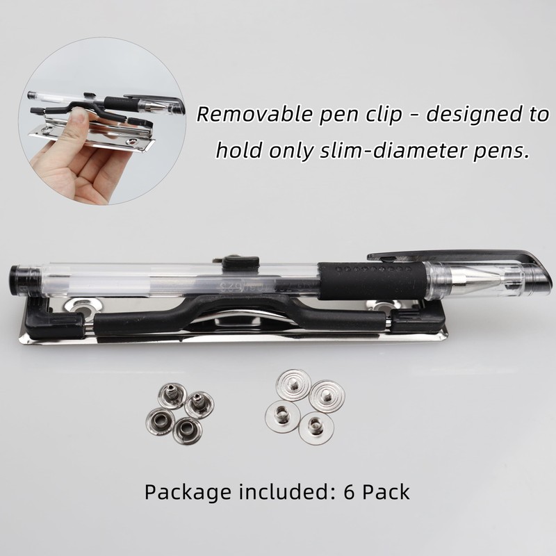 - 【What You'll Find Inside】: Open the box and you'll find 6 sturdy clipboard clips, each with a pair of rivets. But wait, there's more! We've included an extra set of differently-styled rivets to enhance the product's flexibility. Standard-sized metal Clipboard Clips with plastic feet mean no more torn papers.