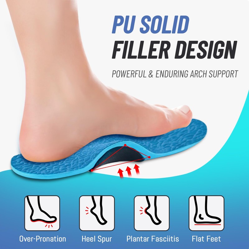 - 【Foot Pain Relief】: Experience superior arch support to ease stress and pain caused by conditions like flat feet, Plantar fasciitis, Achilles Tendonitis, and Ball of Foot pain. The dual-layer cushioning minimizes stress and fatigue. Note: Not suitable for daily or Preventive use by individuals with low arches due to the solid filler arch support.