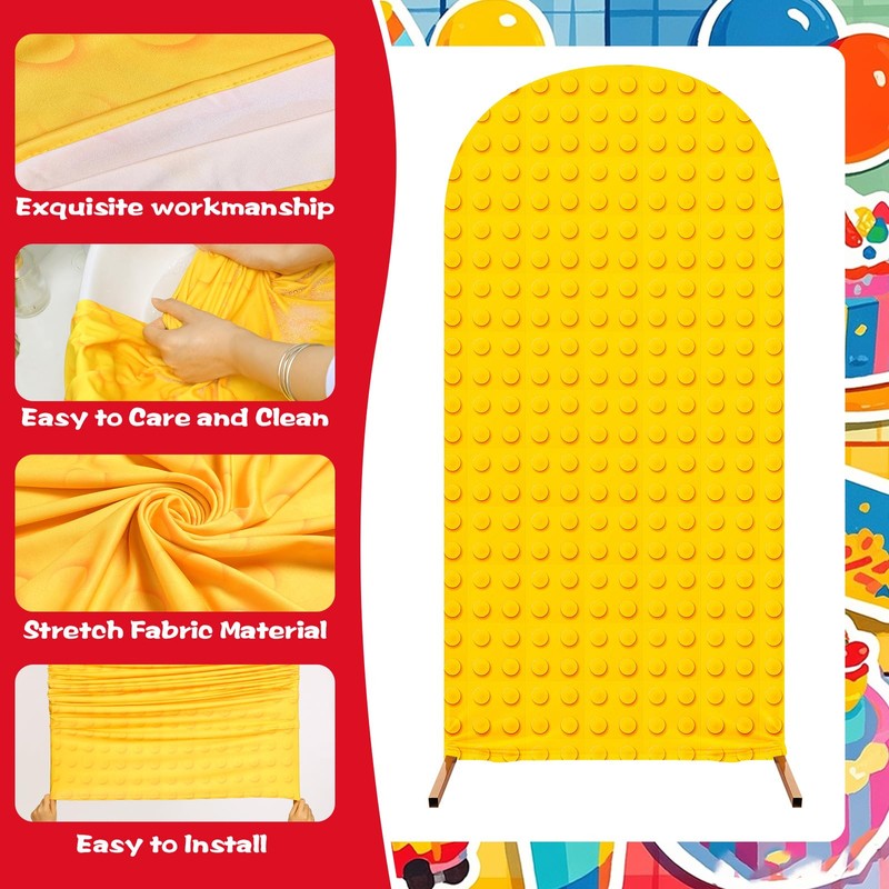- Spandex Material: the colorful bricks arch backdrop cover is made from spandex material, They are safe and nontoxic and the patterns and colors are well-printed and do not fade, providing you with a joyful colorful building blocks party