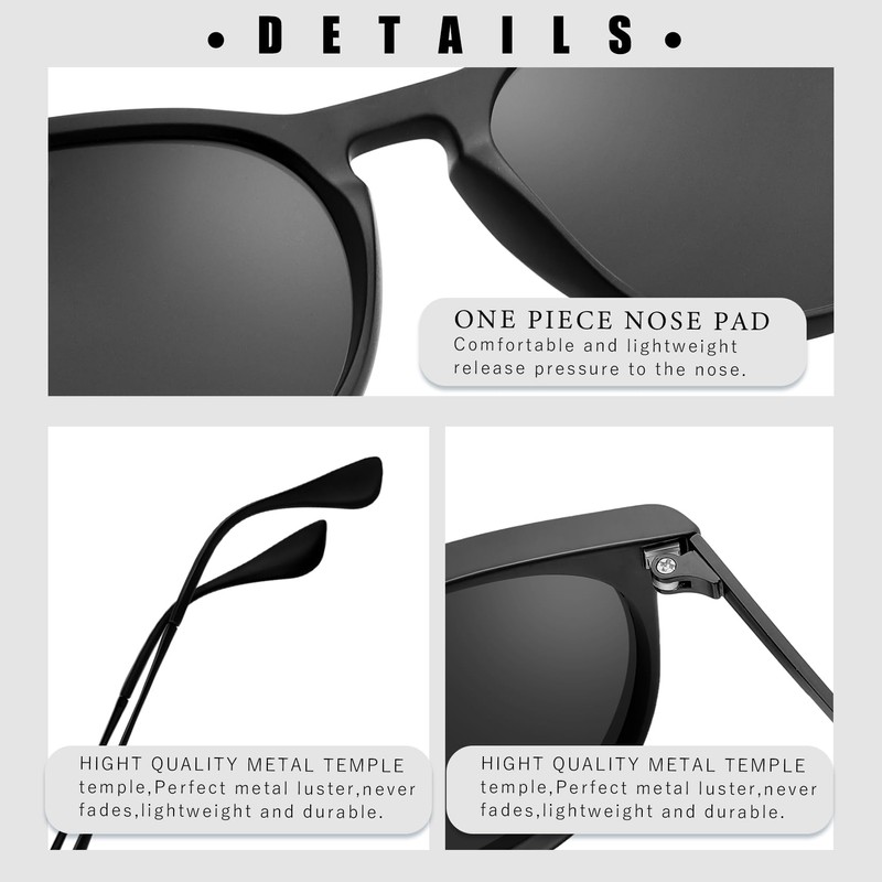 - Material Composition: Front frame: Ultra lightweight TR90, Vine: Metal, Lens: High quality plastic, 99% polarized/UV protection