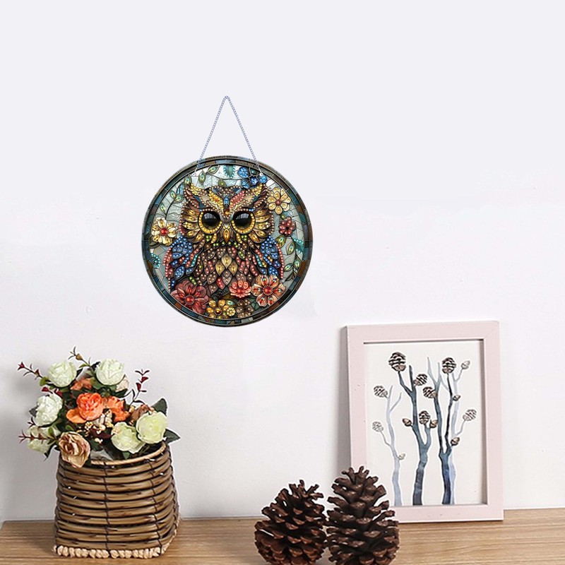 RIMILIE Diamond Art Painting Pendant Kits 5D Diamond Art Painting Art Hanging Kit Owl DIY Diamond Crystal Window Pendant Kit for Adults Gift Wall Home Decoratio