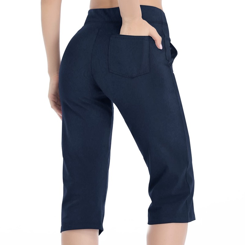 RIMLESS 7 Women's Capri Pants with Pockets Lounge Crop Yoga Pants Tummy Control Stretch Workout High Waist Athletic Pants P03-Dark Blue-M