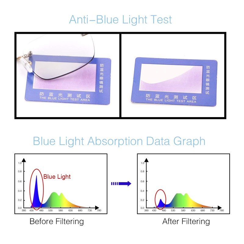 - 【Anti Glare Blue Light Blocking Glasses】▶High-definition blue light blocking lens filter out high energy blue ray from digital screen, clear vision and protect eyesight.alleviating discomfort and visual fatigue from long periods of computer use.7-layer anti-reflective coating to reflect and filter blue light, cut UV 400 (ultraviolet ray), reduce eyestrain and sleep better. High light transmittance with no noticeable yellow tint to prevent color distortion, minimize glare from digital screens