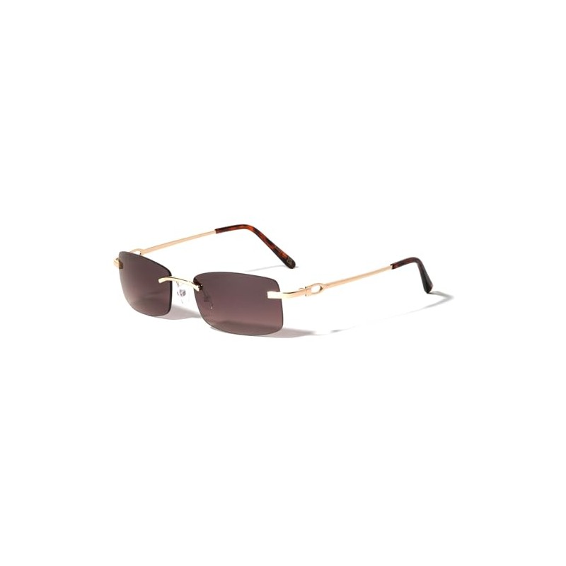 Rimless Rectangle Thin Frame Temple Sunglasses (Brown Smoke)