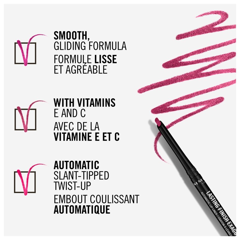 - Automatic, slant-tipped lip liner for precision and ease of use