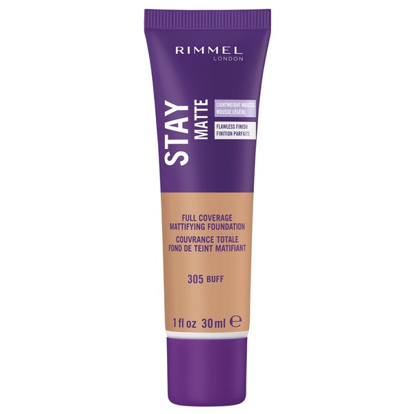 Rimmel London Stay Matte Liquid Mousse - 305 Buff - Foundation, Lightweight, Shine Control, Oil-Free, 1oz