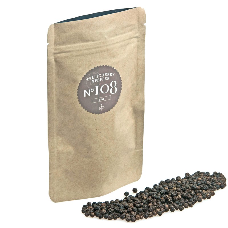 Rimoco N°108 Organic Tellicherry Pepper - Whole Peppercorns, Hand-Picked with Fine Fruity Lemon and Nutty Note | Organic Cultivation (DE-ÖKO-007) | 500 g in Kraft Paper Zip Bag