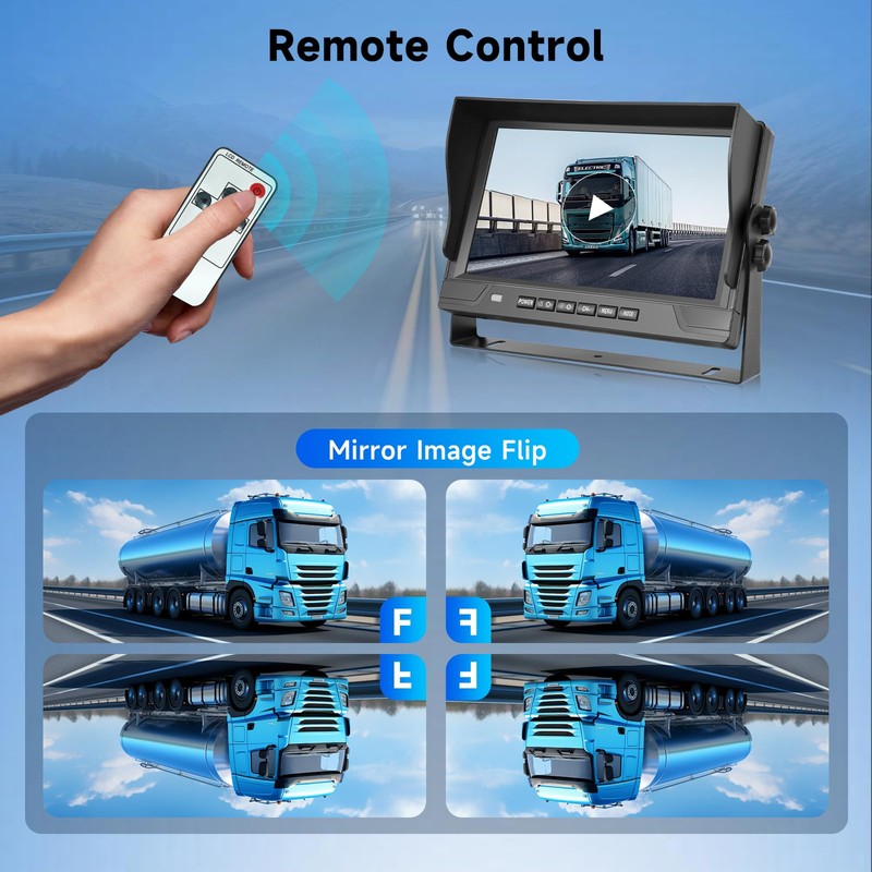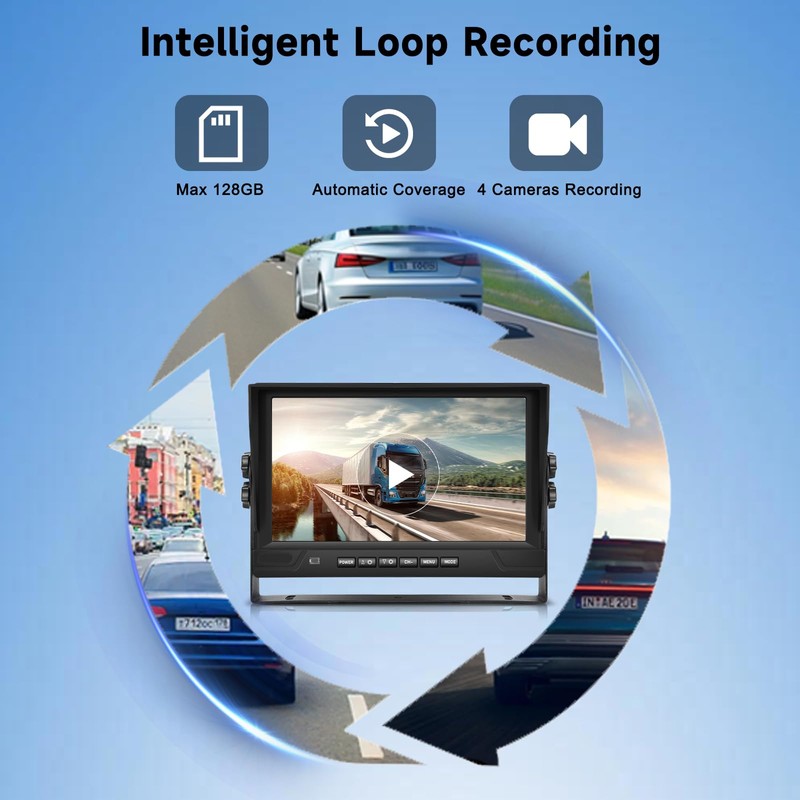 - 【4-Camera Monitor with Playback Functionality】This car display monitor enables simultaneous live recording from four cameras, ensuring comprehensive coverage of all critical details. The included remote control enhances user convenience by simplifying operation for drivers, thereby improving efficiency and minimizing the risk of accidental inputs.