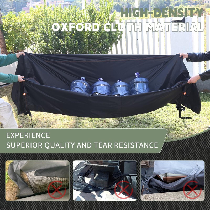 - 【Funda de muebles impermeable para mejorar el rendimiento】¿Tus muebles de exterior han experimentado un envejecimiento rápido, óxido y cojines húmedos después de mojarse por la lluvia? Estas fundas para muebles de patio están revestidas con una capa de revestimiento impermeable de PVC en la parte inferior de la tela Oxford pesada, que se actualiza de 5000 Pa a 15000 Pa, y se añade cinta impermeable a las costuras, por lo que los agujeros son menos propensos a la filtración de agua, y el rendimiento impermeable aumenta en un 35%.