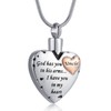 - Engraved Heart Urn Necklace: God has you in his arm ,I have you in my heart on this pendant ,equipment with a solid 22 inch snake chain , filling funnel and pin