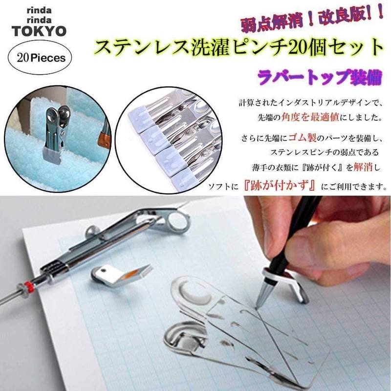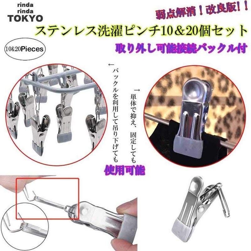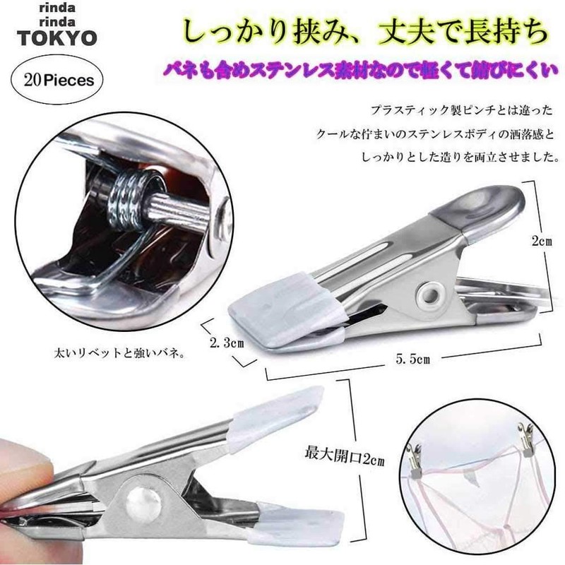 rinda Clothespins, Pinch, Set of 20, Stainless Steel, Weak Point Relief, Clip, Strong, Connecting Buckle, Anti-Slip, Trousers, Hanger, Rust Resistant, Laundry Goods