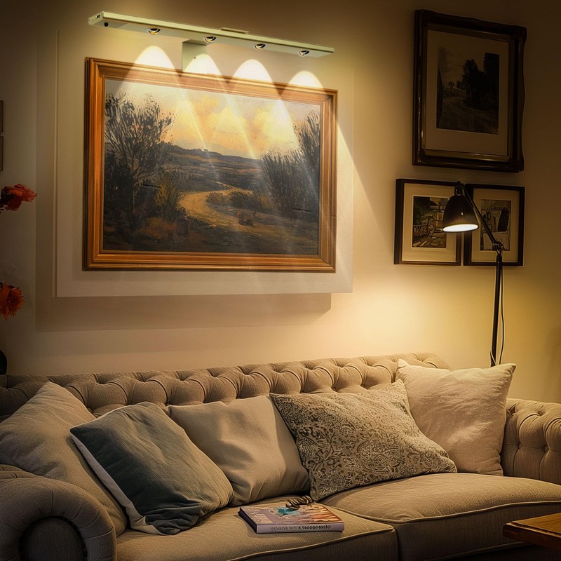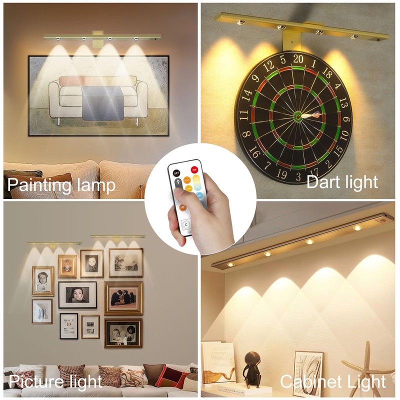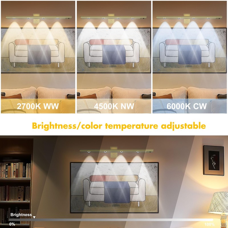 - 【Adjustable Brightness and Color Temperature】The LED picture light can be long pressed to increase or decrease the brightness and short pressed to adjust the color temperature.
