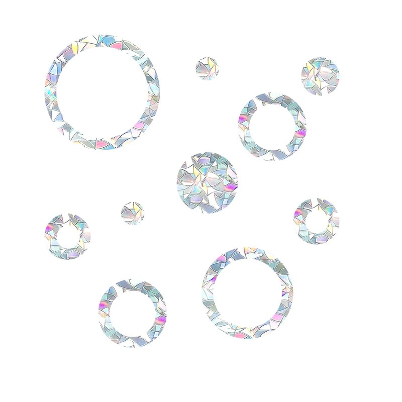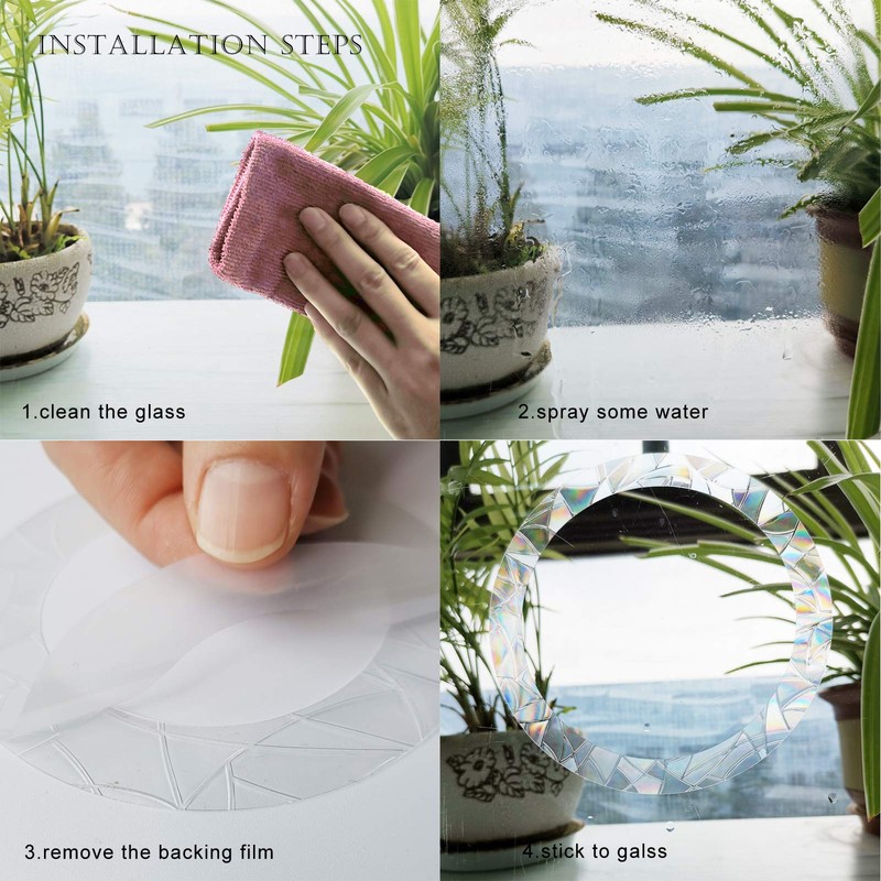 - The decals break up reflections on the glass and alert birds away to avoid window strikes. Made with translucent prismatic vinyl which captures sunlight and turns it into amazing rainbows to your room.