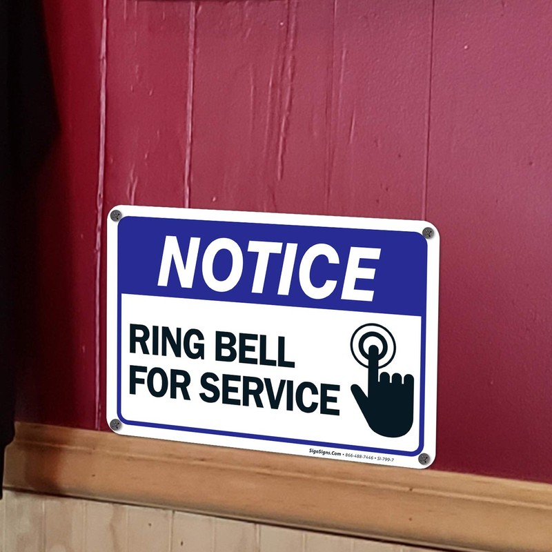 Ring Bell for Service Sign, 10x7 Inches, Rust Free .040 Aluminum, Fade Resistant, Made in USA by Sigo Signs