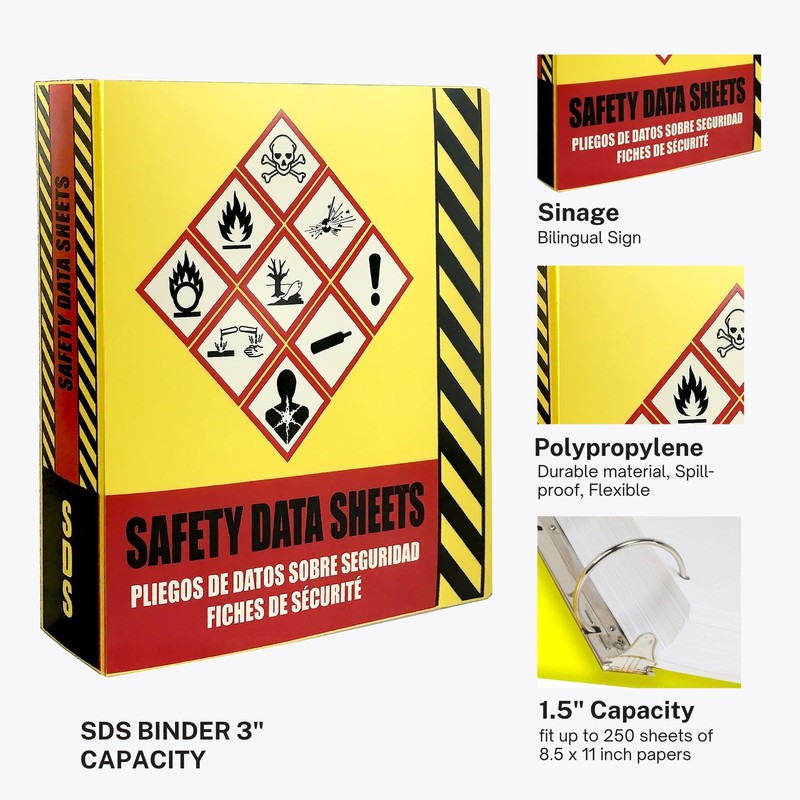 - Carpeta de 3 anillos de 1.5 pulgadas SDS/MSDS: carpeta profesiol que ple con los requisitos de OSHA 2012. Incluye anillos redondos de 3 pulgadas: puede adaptarse ha 250 hojas de papeles de 8.5 x 11 pulgadas, que es el taño endar la mayoría de doentos, incluyendo hojas de datos de seguridad.