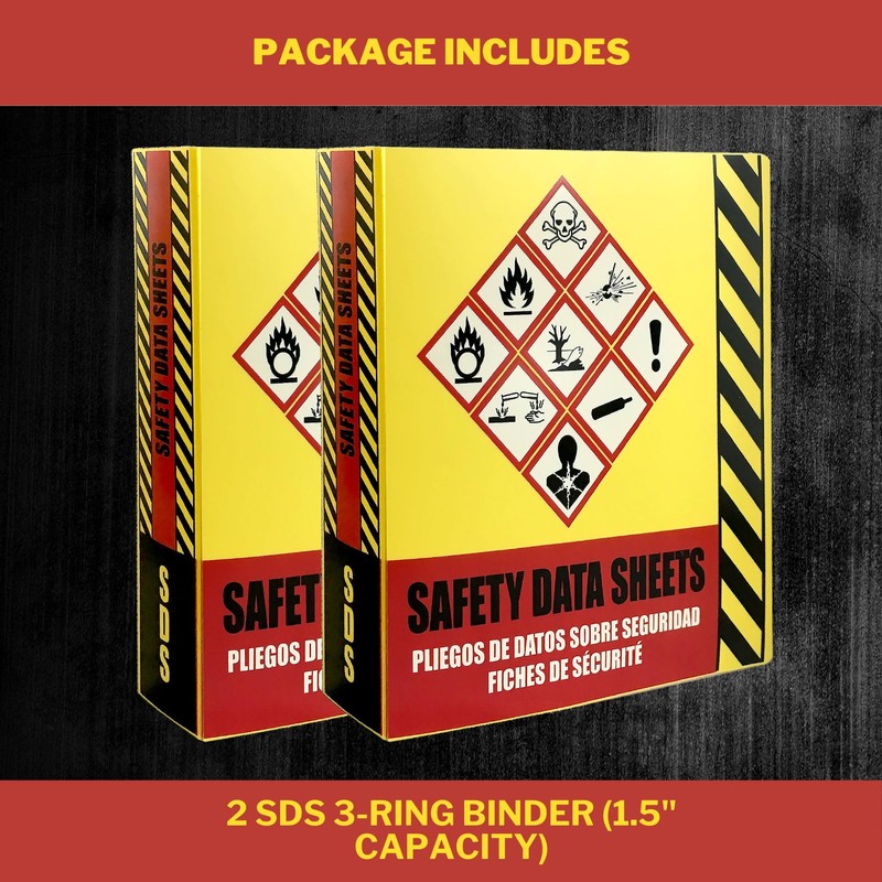 Ring Binder Depot Paquete de 2 carpetas SDS, carpeta resistente de 3 anillos con capacidad de 1.5 pulgadas, capacidad para 250 páginas, trilingüe con inglés, español, francés, hojas de datos de seguridad duraderas y altamente visibles, color amarillo