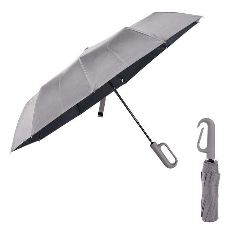 Ring Buckle Umbrella,Compact Folding Travel Umbrella for Rain & Sun, Automatic Open Close,10 Ribs, Portable Umbrellas for Men and Women (Gray, 27")