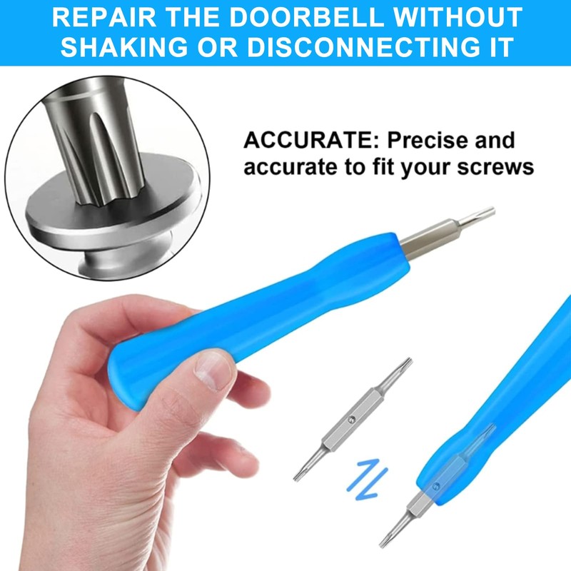 - Design: This screwdriver set with a blue handle comes with original screws, making it easy to replace batteries and perform maintenance. It features a high-hardness, high-magnetic bit, making it suitable for video doorbells. Perfect for Ring Doorbell Screws.