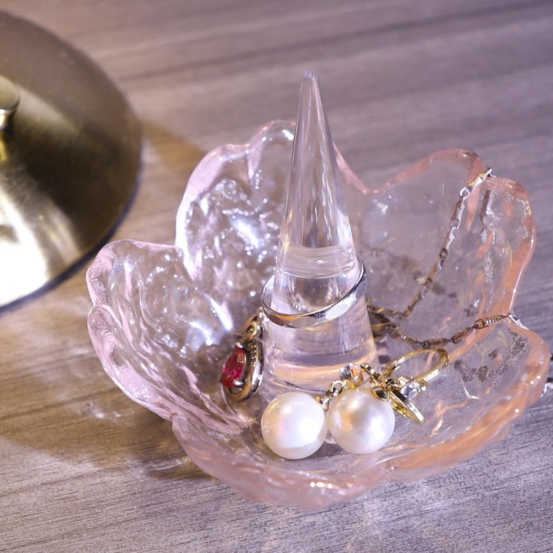- Premium Quality, Artistic Design: Made from durable, crystal-clear glass, this jewelry holder balances sturdiness and sophistication. The raised center pole holds rings securely, while the spacious lower tray accommodates earrings, keys, or bracelets. Its handcrafted pink cherry blossom design elevates it from a simple jewelry organizer to a decorative accent. Perfect for daily use or display, it complements modern, bohemian, or minimalist interiors as both a jewelry rack and a statement piece.