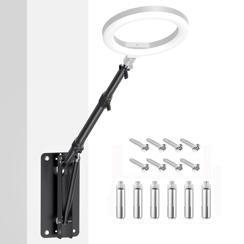 - 【Adjustable Length & Flexible Angle】(NOT Come with ring light) With two adjustable knobs, the length of ring light wall mount can be adjusted from 31.5 inch to 53.9 inch. Dual-swivel design makes it flexibly can be adjusted up and down or side to side from 0° to 180°, which meets your different needs of lighting angles.