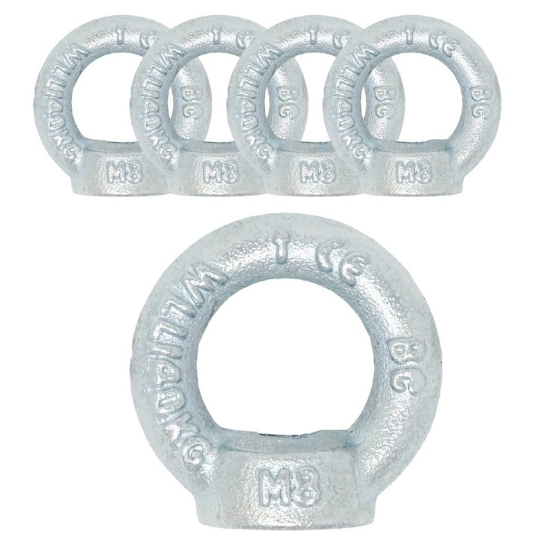 Ring Nut M8 DIN 582 C15E Pack of 5 Eyelet Nuts Iron Galvanised Stop Medium Load 140 kg