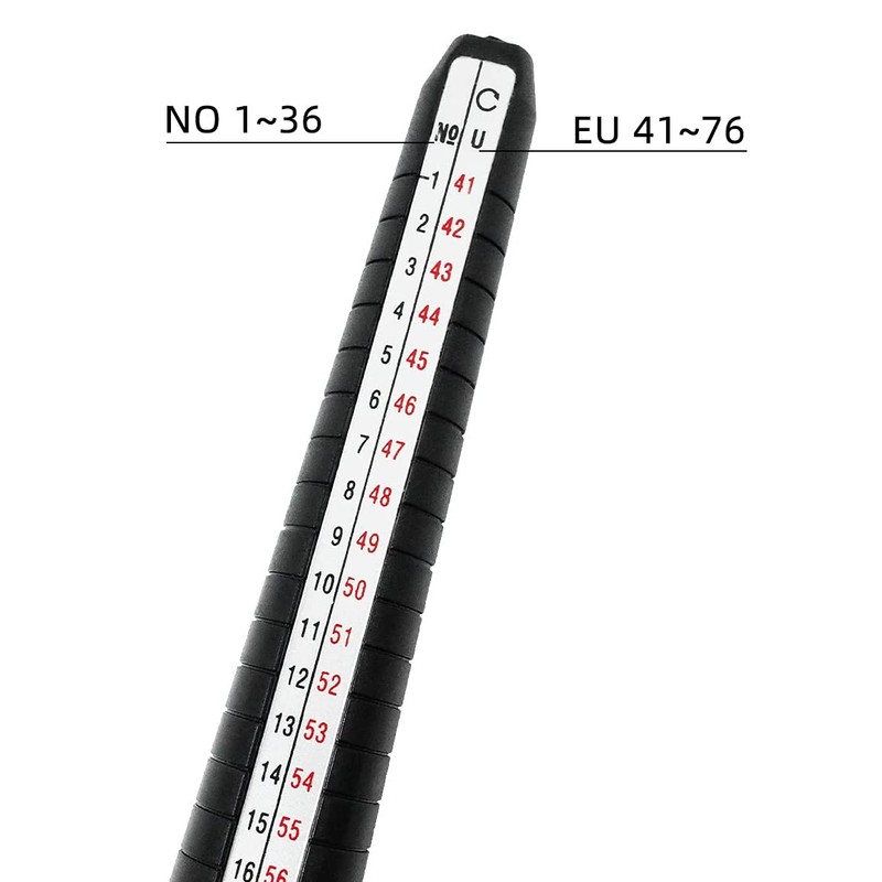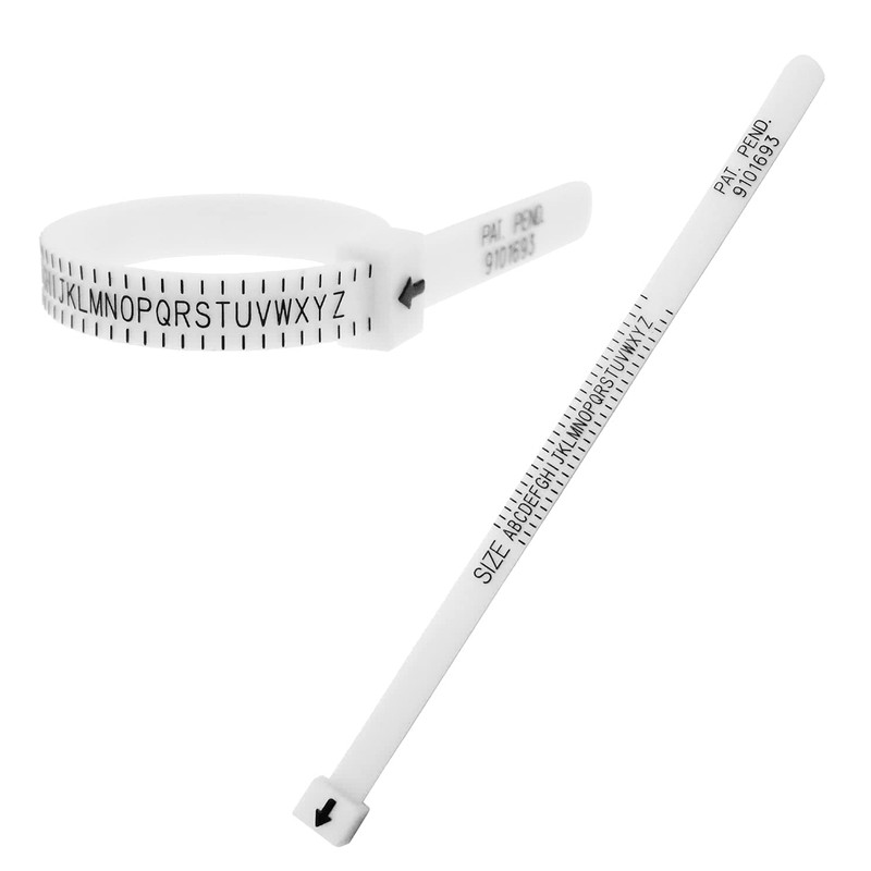 - Plastic ring sizer with US sizes from 1-15 and European sizes from 41-76.