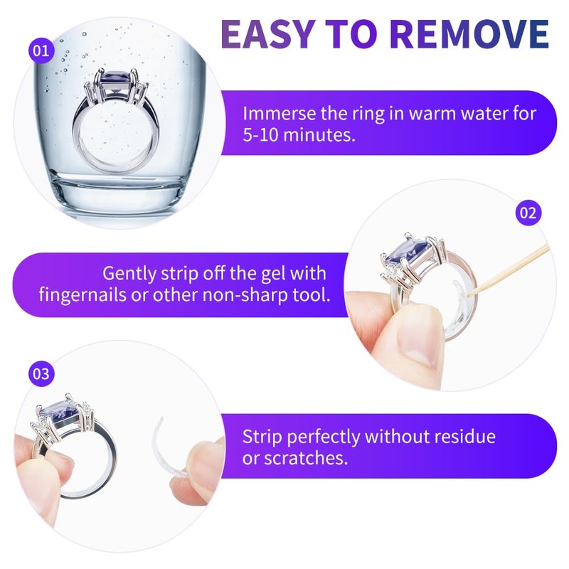 - Easy to Disassemble - Simply soak in warm water for 5 minutes to remove cleanly. No residue or scratches will be left behind to protect your precious ring.