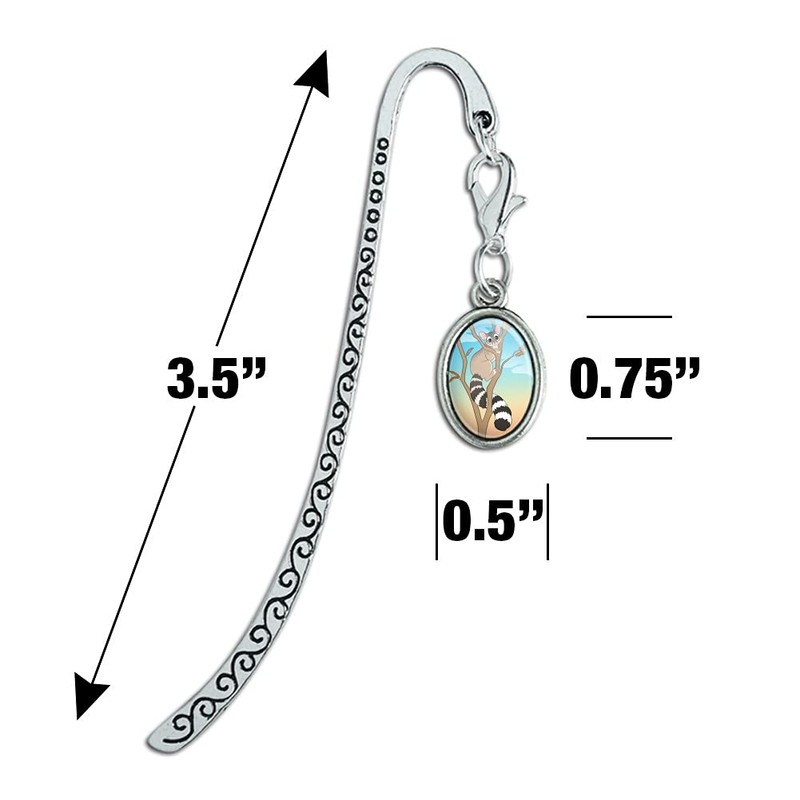 - QUALITY MATERIAL: Crafted from plated metal, our stamped bookmark stem boasts an elegant scroll design, and includes a resin-coated oval charm with the featured design displayed on one side. Approximate size of charm is 0.75" (19mm) in length. Total length is approximately 3.5" (85mm) in length.