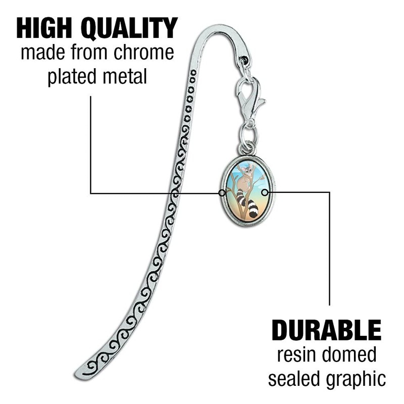 Ring-Tailed Cat Metal Bookmark Page Marker with Oval Charm