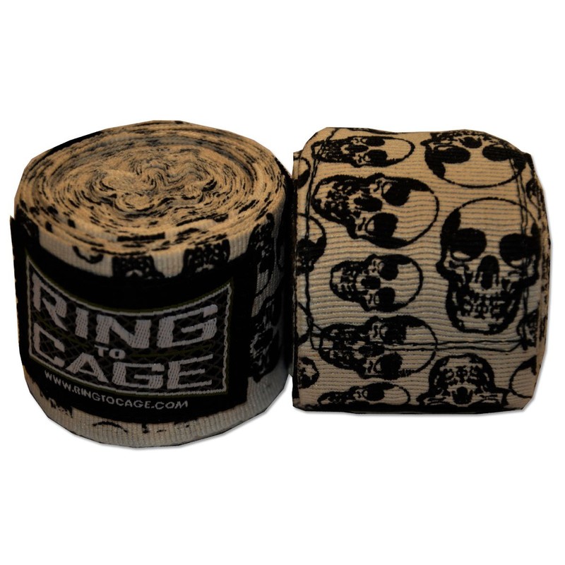Ring to Cage Handwraps Mexican Style Stretchable- Patterned 180" (Black Skull)