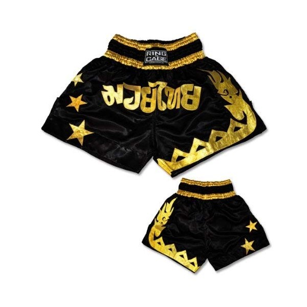 Ring to Cage Muay Thai Shorts-Black/Gold (Medium)