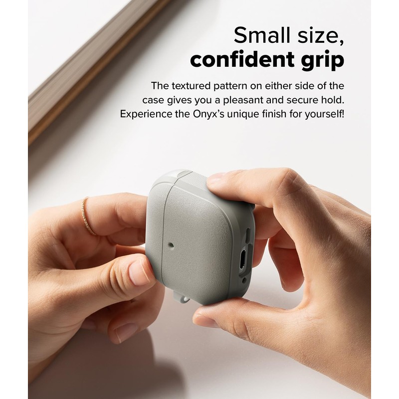 Ringke Onyx Magnetic [Compatible with MagSafe] for Airpods 4 Case, Non-Slip Shockproof TPU Firm Grip Cover for Magnetic Charging with Keychain Carabiner for AirPods 4th Generation - Warm Gray