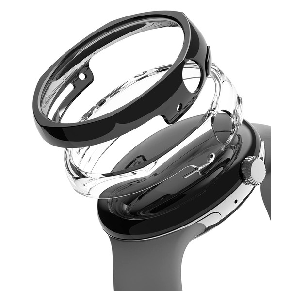 Ringke Slim Edge [Anti-Yellowing Material / 2 Pack] Compatible with Pixel Watch (2022) Case, Anti-Scratch Elegant Angle Shaped Solid Transparent Protective Cover - Clear + Dark Chrome