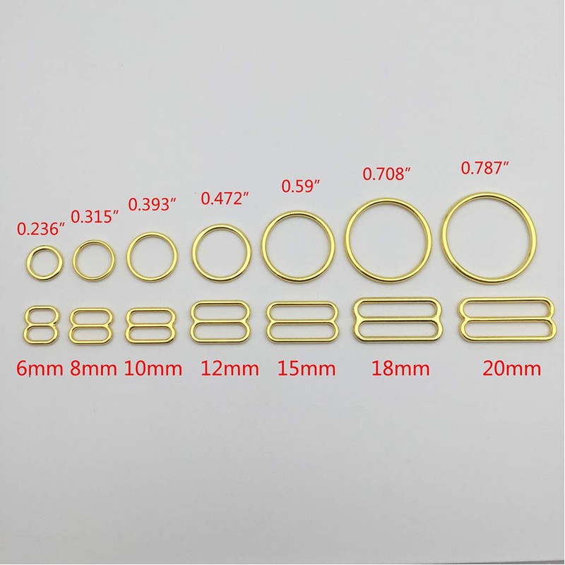 Rings and Sliders Premium Jewelry Quality Bra Making/Replacement Metal Supplies Garment DIY Accessories (Gold,8mm)