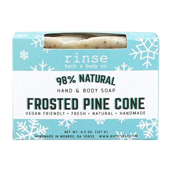 Rinse Bath & Body Frosted Pine Cone Soap - Handmade Pine Cone Scented Castile Soap | Naturally Moisturizing Bar Soap | Shea & Cocoa Butter | Essential Oils | Natural Soap |Vegan | Gluten Free |4.25oz