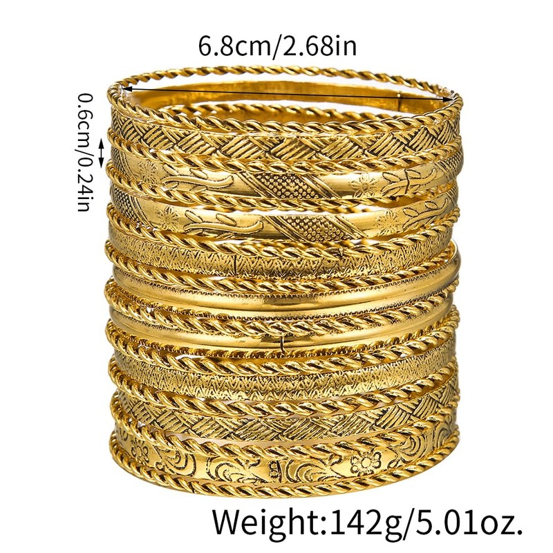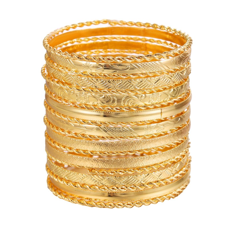 RINTOLER 19Pcs Gold Bangle Bracelets for Women - Multi Layer Stackable Textured Bracelets Boho Bracelets Set for Women. (19Pc Gold)
