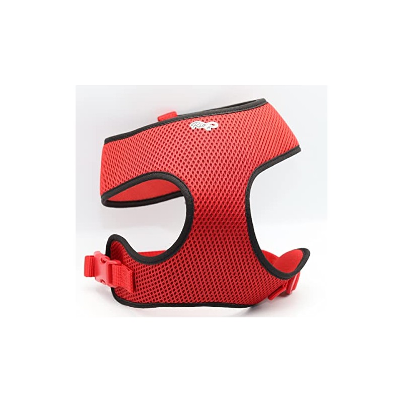 RIO Airy Webbing Puppy Harness, Breathable Mesh Fabric, No Pull Dog Harness, Adjustable, Washable (Red, Width 1,5cm, Length 25-35cm)
