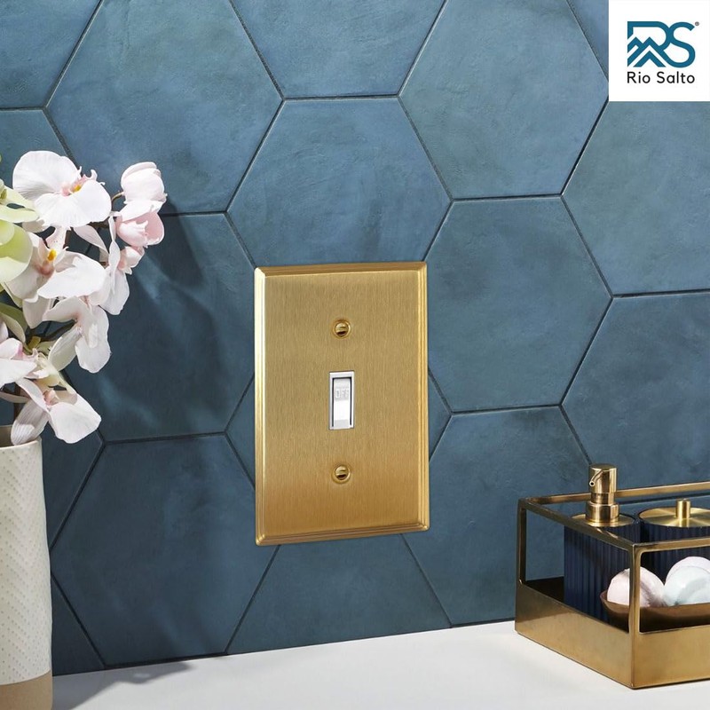 Rio Salto BRASS Modern Metal Gold Toggle Light Switch Covers Wall Plate Single Toggle Switch Wallplate Decorative Gold 1 Gang Wall Switch Plate Covers Hardware Included STANDARD SIZE