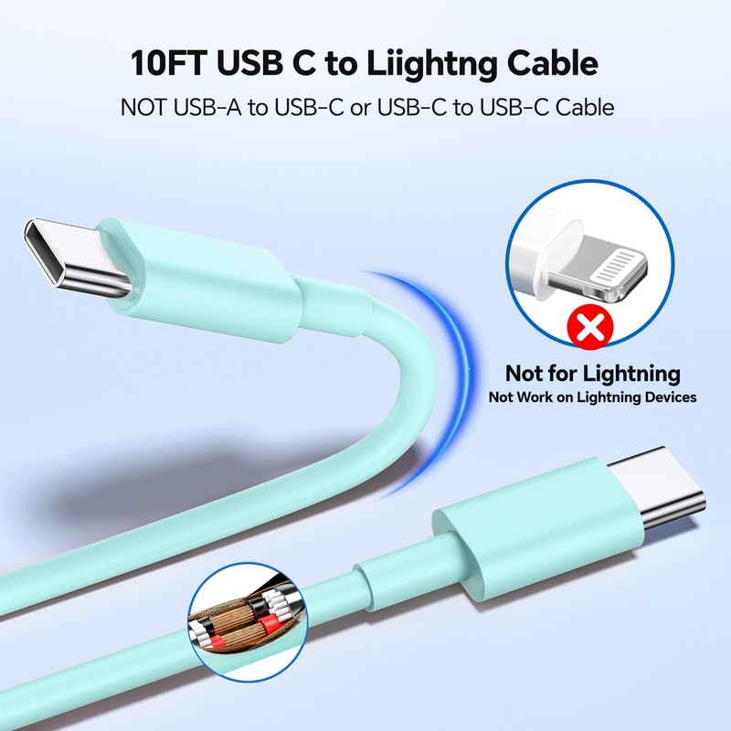 - 10TF Length: With the USB C charging cable cord being 10 feet long, you can lie on the sofa or sofa and use the device while charging at the same time. You can use it freely in the bedroom, office or in the back seat of the car. High-quality i Phone charger cord i phone offer durability and flexibility.
