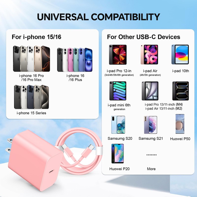 - Safe and reliable: USB C charger block is equipped with PD 3.0 and a built-in multi-protection system, USB C charger block can intelligently adjust current to meet your device needs, avoiding overvoltage, charging, overheating, etc., ensuring a fast and safe charging process for your phone.