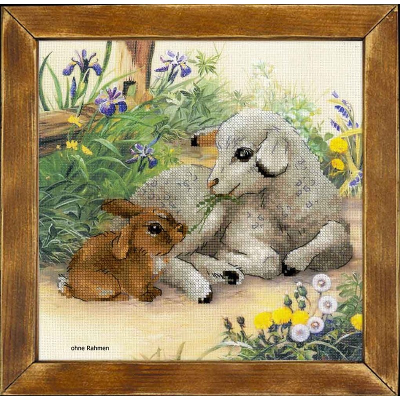 Riolis 0051 Pt Lamb and Rabbit Cross Stitch Kit Cotton Multi-color 30 x 0.1 cm
