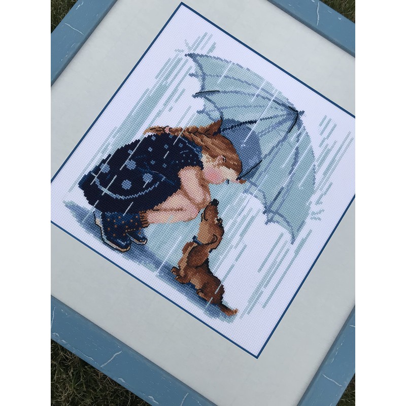 Riolis 1720 Unter meinem Regenschirm Kreuzstich-Set, Baumwolle, Mehrfarbig, 25 x 25 x 0.1 cm