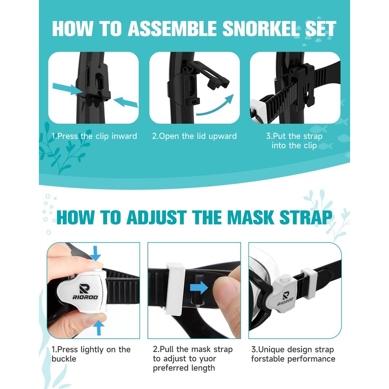 - 180° anti-fog panoramic view: the RIOROO children's diving goggles are designed with integrated glass and have been subjected to an anti-fog treatment. So you get a clear, bright, safe view and good transparency. Just let your child enjoy the fun of the underwater world.
