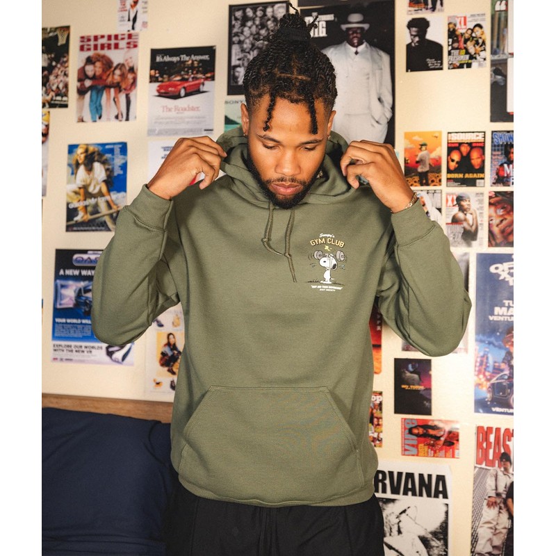 Riot Society Peanuts Snoopy's Gym Club Mens Hoodie - Military Green, X-Large