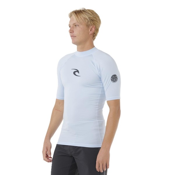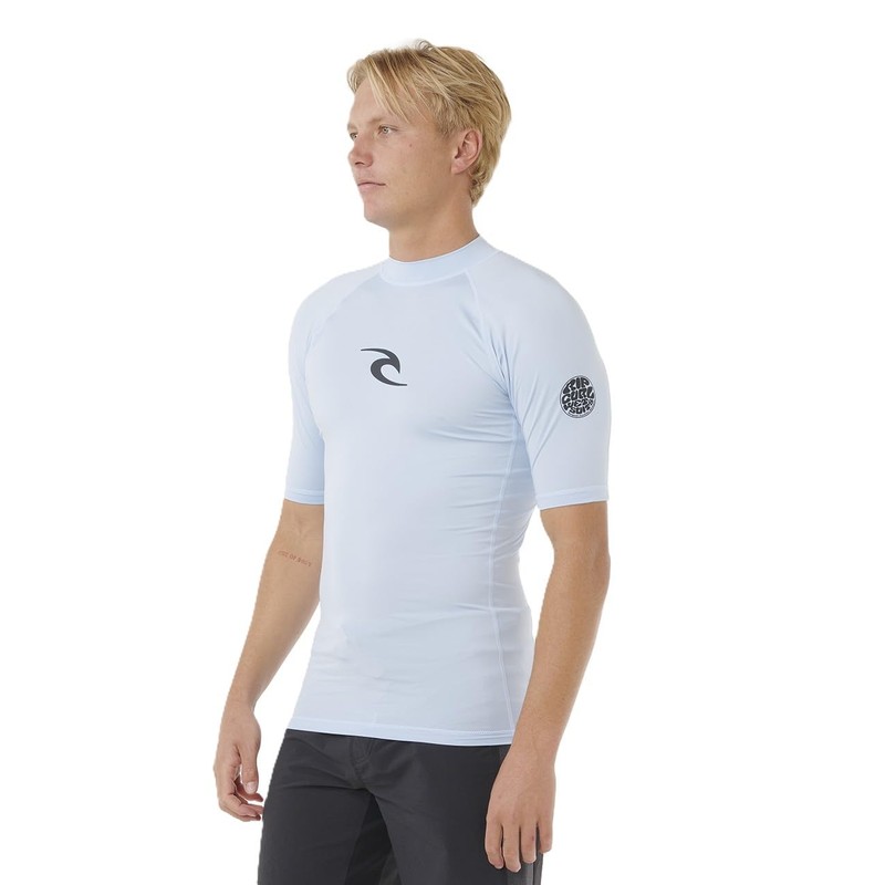 RIP CURL Men's Waves Short Sleeve UPF 50 UV Sun Protection Rash Vest Top Blue Wind Size Medium