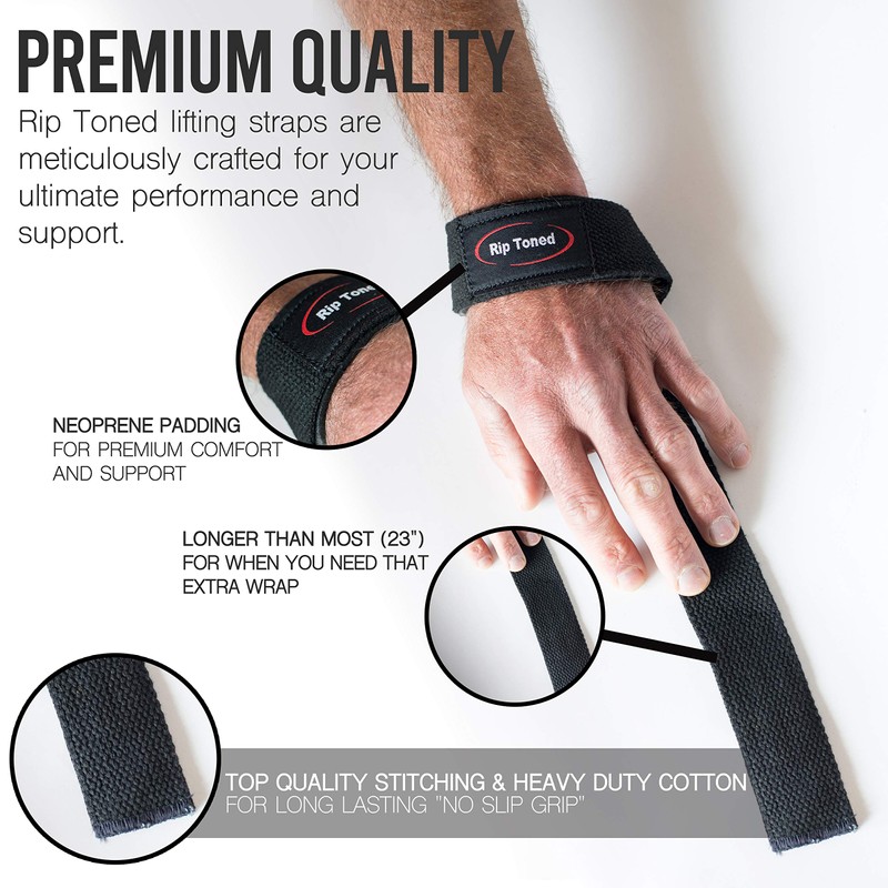 Rip Toned Lifting Straps for Weightlifting – Pair of 23 In. Cotton Weight Lifting Straps for Men and Women with Neoprene Padding – Lifting Wrist Wraps for Deadlift, Powerlifting, and Strength Training
